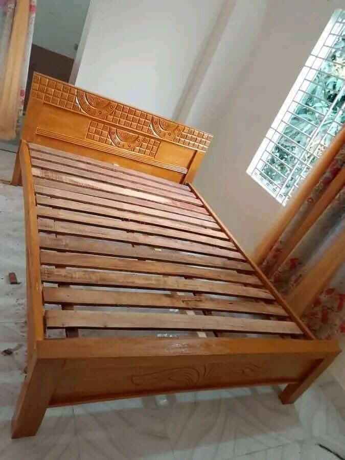 প্রিমিয়াম মানের খাঁটি কাঠের তৈরি বেড, টেকসই ও নান্দনিকতার নিখুঁত সমন্বয়। উচ্চমানের সেগুন/গামারি/মহগনি কাঠে তৈরি এই বেডটি ঘরের সাজে আনে প্রাকৃতিক সৌন্দর্য ও রাজকীয় শৈলী। মজবুত কাঠামো, মসৃণ ফিনিশিং এবং আধুনিক ডিজাইনের কারণে এটি দীর্ঘদিন ব্যবহার করেও টেকসই থাকে।